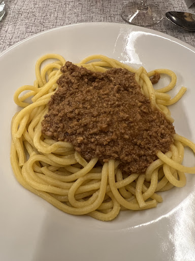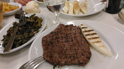 Read moreArmatevi di pazienza, ma garantisco che l'attesa vale la pena! Siamo stati collocati in una saletta piccola, quindi non ho visto il resto del locale, posso solo dire che trovo bizzarri i quadri alle pareti che riproducono cavalli. Dopo una lunghissima attesa per ordinare, è stato tutto in discesa. Come antipasto consiglio assolutamente la soppressa, qualcosa di spettacolare, meglio se col pane! Poi ho trovato molto buoni anche i bigoli e delizioso lo spezzatino! E non può essere mancare il sorbetto alla liquirizia! Personale molto cortese e conto per me più che onesto! Per gli amanti della carne, assolutamente...