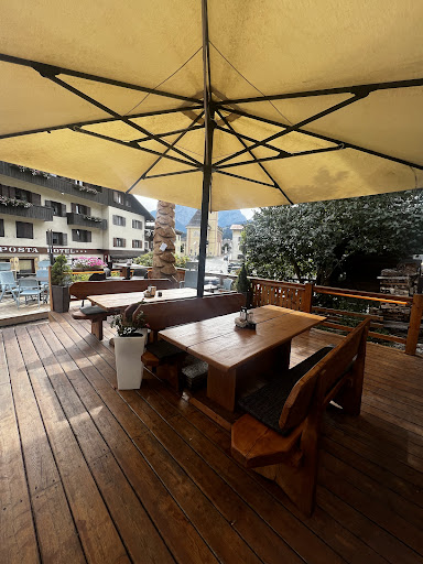 Locale molto ben curato (e instagrammabile) e dà un tocco di luce a tutta sappada con le tante lampadine che decorano il dehor ampio, luminoso quando c’è il sole e ben attrezzato anche per il mal tempo (tetti e tendoni per la pioggia e pilastri con il fuoco che scaldano i tavolini fuori). Devo dire anche pulitissimo oltre che una gioia per gli occhi, sia a livello del bancone che i tavoli o la toilette (con specchi bellissimi tra l’altro complimenti). Il tutto accompagnato da della musica leggera che fa molta atmosfera.