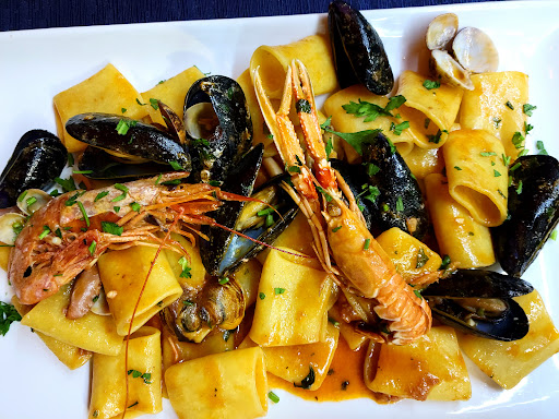 Ladri.. un conto di 75 euro improvvisamente diventa 105 euro.. il cameriere ci rifà il conto e fa finta che nn era il nostro ma aveva sbagliato tavolo.. guarda un po, chissà chi aveva preso le stesse nostre pietanze.. una sala semi piena di gente con solo 2 camerieri che poverini a fine serata erano stanchi morti.. (consiglio loro vivamente di scappare via da quel posto).. senza nemmeno un po di organizzazione, 3 ore per prendere una comanda.. arriva l antipasto e fanno uscire anche una pizza ovviamente fatta tornare indietro.. gente che si lamentava e almeno 3 coppie se ne sn andate via perche aspettavamo da troppo tempo.. una pasta e fagioli con le cozze che faceva schifo e una frittura di paranza orribile..nn voglio aggiungere altro pke il discorso sarebbe troppo lungo.. ma comunque vorrei dire al proprietario che purtroppo nn si e fatto vedere o si sara camuffato per cameriere o altro, se nn sai gestire un attività e meglio che stai a casa perché nessuno ci verrà piu da te.. mi dispiace solo per quei poveri camerieri che non sapevano...