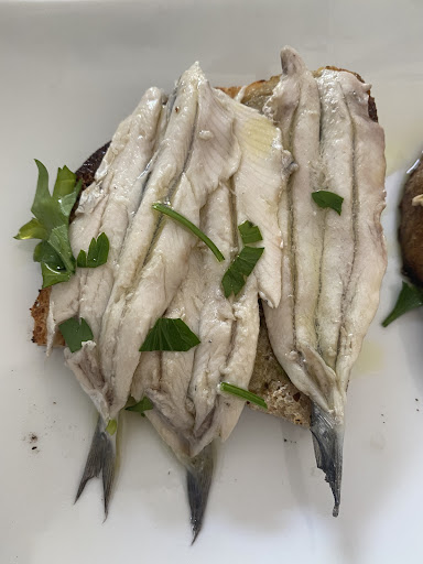 Read moreLocale pulito e curato, personale gentile ma sì sono dovuti sciogliere cammino facendo, il primo contatto un po' rigido e imbarazzante, ci sembrava di dare fastidio con le nostre richieste. Cena con amici. L'esperienza è stata buona ma non eccellente come mi aspettavo. Antipasto misto mare buono nel complesso. Alici marinate, polpo con verdure e seppie, seppie morbidissime, polpo coriaceo. Tortino con gamberi senza infamia e senza lode. Sformato di cicinielli buono ma mancava di una spinta al palato. Abbiamo fatto togliere l'involtino di salmone e Philadelphia perché secondo me era una nota davvero stonata in un tipico antipasto cilentano. Extra misto mare abbiamo preso frittelle di alghe gustose e alici ripiene nella norma. Impepata di cozze ottima e abbondante. Passando ai primi: strascinati allo scoglio, strascinati con melanzane e spada, spaghetti con alici di menaica, spaghetti alle vongole veraci. Le paste erano abbondanti, saporite, un po' troppo olio che copriva il gusto del pesce. La cottura degli strascinati era un po' avanti quindi risultavano un po' mollicci. Ampia scelta di vini, con un ricarico evidente. La bottiglia che avevamo chiesto non c'era e ci è stata portata un'altra azienda senza avvisarci. La bottiglia era oramai aperta e la abbiamo bevuta anche se dibprezzo più alto rispetto a quella scelta ma di livello inferiore. Prezzo medio alto. In 8 abbiamo speso 200 euro per un antipasto misto mare, due impepate di cozze, una seppia grigliata, una cotoletta con patate, due porzioni di patatine, tre frittelle di alghe, quattro alici ripiene, quattro primi due bottiglie di vino, tre acque...