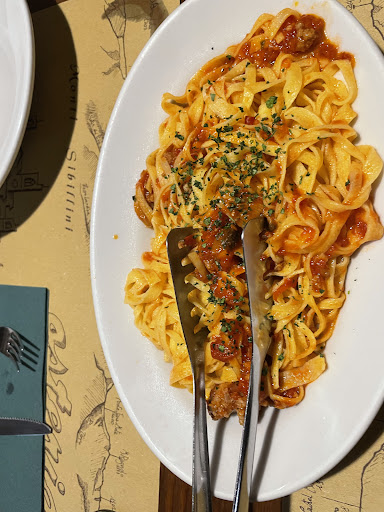 Read moreFinalmente in vacanza, primo ristorante provato in zona. Il dubbio mi era preso prima di sedermi perché alle 20.30 nessun tavolo stava mangiando. Dopo 20 minuti che siamo stati accolti, pensavamo che stesse arrivando finalmente il menù, invece scopriamo che c'è ancora da aspettare e che il menù in questo ristorante non esiste. Queste cose mi dispiace dirlo ma succedono solo in Italia! Come si fa, ad offrire un servizio di ristorazione senza un menù! Prima di tutto io voglio vedere cosa prendo e quanto costa. Non voglio certo avere sorprese al momento del conto. Non credo onestamente sia neanche legale una cosa così. Ordini alla cieca, senza sapere se una porzione viene 50 o 10 €. Il menù viene esplicato dal proprietario per ogni tavolo, a voce. Una perdita di tempo considerevole perché non si capisce cosa c'è, cosa ha detto, il menù viene ripetuto più e più volte ecc ecc...La scusa del "no menù " è che ogni giorno questo varia, ma scriverlo in una lavagna non costerebbe niente e soprattutto eviterebbe questo imbarazzante teatrino. Onestamente ero molto tentata di andarmene, ma purtroppo era già tardi per un'altra scelta. Gli ordini vengono presi solo ed esclusivamente dal proprietario, con molta, molta, moltissima, troppa calma. Per ogni tavolo viene recitato il solito rosario. Alla fine sei talmente confuso che vuoi solo mangiare e ordini qualcosa, senza aver ben capito che cosa c'è e che cosa non c'è. Anche perché dopo oltre mezz'ora di attesa per ordinare si è già abbastanza irritati.Per farla corta abbiamo preso io un primo e mio marito un secondo. Abbiamo iniziato a mangiare SOLO dopo più di un'ora che ci eravamo seduti. La qualità del primo era qualità del supermercato Penny. Tortellini scadenti con dei funghi accettabili ma nulla di speciale. Il secondo ha ottenuto un 6.5 come voto. Insieme alla carne sono state prese anche le patate al forno che erano per la maggior parte bruciate. Mio marito voleva prendere un dolce ma alla fine dopo il troppo aspettare e dopo che onestamente mi ero alquanto irritata, abbiamo pagato e siamo venuti via. Le due stelle le do solo per il proprietario, perché si vedeva che amava il suo lavoro, e che lo faceva con passione. Malgrado ciò, non era assolutamente in grado di gestire la situazione. Per il resto non ci tornerei e non lo consiglierei come posto, a meno che non vogliate passare la nottata ad ordinare e aspettare le pietanze. Pietanze che a mio parere non sono neanche nella media. Meglio fermarsi a...