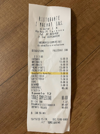 Servizio lentissimo e “doggy bag” a pagamento. In giro per Saronno decidiamo di fermarci a pranzo in questo ristorante, attirati dalle foto del locale e dei piatti, che effettivamente sono molto buoni. Pan tranvai con lardo e miele spaziale, tagliere di formaggi molto buono e risotto con ossobuco gustoso e abbondante. Il locale era pieno (anche se i coperti non sono tantissimi), per prendere le ordinazioni è passato più di un quarto d’ora (e abbiamo dovuto attirare l’attenzione del personale), gli antipasti sono dopo circa 20 minuti ma il risotto ci ha messo più di mezz’ora da quando abbiamo finito la prima portata. Bene perché magari è fatto al momento, ma magari dovrebbero scriverlo sul menu per mettere “le mani avanti” e preparare il cliente. Purtroppo la sorpresa è arrivata all’uscita: non avendo finito tutti gli antipasti e una porzione di risotto, abbiamo chiesto di poter portare a casa quanto avanzato. Nessun problema, tempo 5 minuti avevamo tutto impacchettato sul tavolo. Peccato che, senza dirci nulla a voce, ci sia stato addebitato € 1,00 per le due vaschette di plastica, cosa mai vista da nessuna parte. Considerando che abbiamo pagato € 3,00 a testa di coperto per un tavolo “allestito” con tovaglietta di carta striminzita usa e getta, tovaglioli di carta e pane non molto fresco, trovo allucinante questo addebito “silenzioso” in scontrino di cui purtroppo mi sono accorto solo all’uscita perché ho guardato...