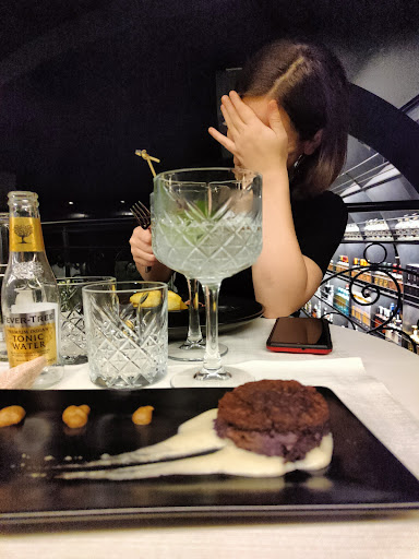 Read moreBellissima serata fra amiche. Abbiamo voluto provare questo nuovo concetto di Gintoneria Bistrot . Aperitivo al aperto in una serata molto calda, Gintonic baby size, aromatizzati, classici, come preferite, hanno infinite varianti, una più buona che l'altra con chips di patatine appena fate molto gradite. Consigliata la prenotazione per avere sicuro un bel tavolo, altrimenti rischiate di non trovare posto. Ci siamo spostati dentro per cena. Ambiente con grande stile e buon gusto, bel arredamento, pochi tavoli, spazi giusti. Nella mise en place farei solo un cambiamento, capovolgerei i bicchieri/cope. Come antipasto abbiamo fatto un tagliere di salumi piacentini con gnocco fritto molto buono. Due di noi abbiamo preso cous cous di verdure croccanti con polpo alla piastra strepitoso veramente. Assaggiato i ravioli con ripieno di patate, pecorino, menta con burro e briciole di guanciale ottimi veramente. Ogni piatto ha la particolarità di essere abbinato perfettamente a una tipologia di Gin. Per gli amanti del Gin e la ottima cucina questo posto é il top. I piatti elaborati con cura e precisione, le porzioni giuste. Il dessert ci sta sempre, abbiamo scelto concetto di macedonia, particolarissimo dessert da ristorante stellato direi, non potete non assaggiare questa portata semplice ma di gran elaborazione, di sapori unici. Il tortino al cioccolato senza farina con crema alla lavanda e lamponi, soffice, leggero e delicato, delizioso direi. Il prezzo, più che onesto. Il personale molto cordiale. Sicuramente da...