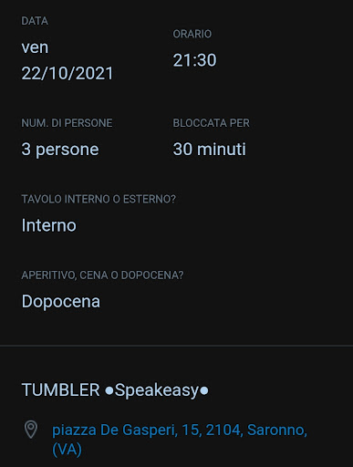 Dopo aver prenotato il Lunedì per il Sabato sera un tavolo per 10, chiedendo cortesemente di riservare il tavolo con un po' di flessibilità sull'orario e ricevendo un'affermazione, arrivati sul luogo, con 15 minuti di ritardo, RIPETO NUOVAMENTE DI AVER AVVISATO, ritroviamo il nostro tavolo occupato da altre persone, a detta del personale, le quali non avranno sicuramente prenotato. Oltretutto il tavolo presso questo luogo è, solitamente, bloccato per 30 minuti, visto che nel momento in cui si prenota presso la piattaforma web si hanno varie informazioni sul tavolo e una è proprio questa. (L'immagine in allegato è rivolta ad una vecchia prenotazione) Il personale dopo questo disagio ci ha comunicato che avremmo dovuto aspettare che qualche tavolo si liberasse così da poterci cedere il posto. Il luogo era decisamente affollato e dopo pochi minuti di attesa si presenta un altro signore, a detta mia un responsabile, il quale ci comunica che in 5 minuti avremmo avuto il nostro tavolo. Dopo alcune decine di minuti il nostro tavolo non si è visto e sicuramente nessuno avrebbe liberato un posto poiché, guardando all'interno del locale, molti avevano appena ricevuto l'ordine. Luogo sicuramente disorganizzato, anche perché in primo luogo molti altri bar chiamano nel caso in cui ci sia un ritardo da parte del cliente per chiedere informazioni sull'orario di arrivo, in secondo luogo si ha poco interesse verso il cliente, immagino che 10 clienti in meno non vi siano pesati, visto che in poco tempo ne avete trovati altri da poter servire.