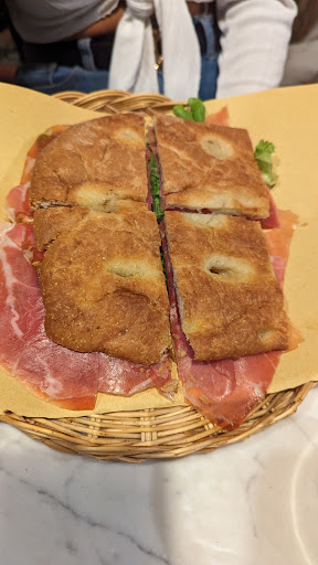 Read moreAbbiamo mangiato la focaccia più buona che ci sia in zona farcita in qualsiasi maniera tu voglia compresa quella dolce cioè farcita con mascarpone e nutella non vi dico che bontà. Il vino ottimo un bel Chianti da pasto fresco di cantina. Prezzo buono con 20 euro abbiamo mangiato antipasti della casa con salumi particolari come x es. la mortadella tartufata .....poi focaccine ripiene dolce caffè e il goccio di ...andare per provare ne vale la pena. Posti all'esterno in veranda e all'interno con aria condizionata....