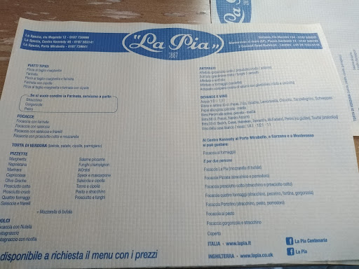 Se volete essere truffati allora La Pia fa proprio per voi😉. Siamo andati da loro visto che La Pia è sempre stata un'istituzione, almeno tanti anni fa alla location di La Spezia. I prezzi non sono esposti da nessuna parte, né dentro né sulla tovaglietta di carta. Ci hanno fatto accomodare fuori, su un tavolo di plastica con sedie altrettanto di plastica, tutto in pendenza sulla strada, perciò scomodo e traballante. Abbiamo ordinato a testa una fetta di pizza, mezza porzione di focaccia di recco e una porzione di farinata. Simil focaccia di recco mediocre, la pizza aveva il gusto di tante altre pizze industriali scongelate, la farinata invece, per cui sono famosi, era molto buona. Foccaccia con nutella imbarazzante, visto che era un triangolino minuscolo di pasta secca con del cioccolato, neanche Nutella. La beffa è arrivata al momento del conto, abbiamo speso quasi 40 euro in due, con dei prezzi veramente esagerati per ogni cosa ordinata, tra cui 1,40 di coperto per una tovaglietta di carta e due posate. Sei praticamente una pizzeria a taglio espresso, non puoi far pagare così tanto il coperto. Costa meno andare a mangiare in una vera pizzeria. I prezzi li decidono loro al momento, visto che hanno un sito su cui sono scritti dei prezzi, completamente diversi da quelli presentati al momento di pagare. E leggendo le altre recensioni direi che non siamo stati gli unici ad essere presi in giro. Si approfittano dell'ingenuità del cliente, visto che sulla tovaglietta è scritto in piccolo che i prezzi possono essere detti su richiesta, ma non ti aspetti di spendere così tanto in una 'pizzeria' a taglio. Concludo sconsigliandovi completamente di andare da loro, o se proprio non trovate nulla, prendete qualcosa da asporto e andatevene il più...