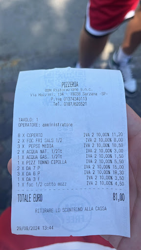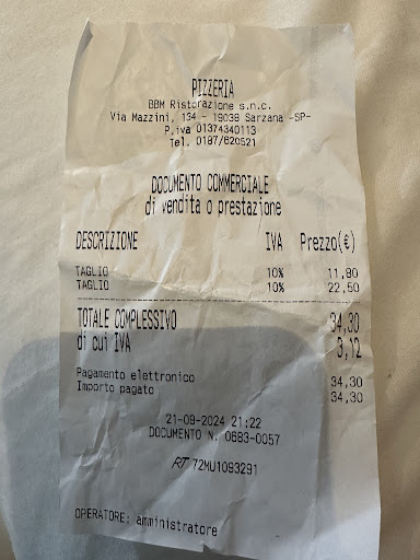 Read moreSono una cliente abituale...in famiglia ci piace molto sia pizza che farinata.... Di solito la prendiamo d asporto..... Stasera con l occasione della notte bianca a Sarzana decidiamo di mangiare lì....entriamo e chiediamo se c'è posto....ci dicono di si...ci sediamo a un tavolo e arriva subito la cameriera con le tovagliette e tt il necessario x apparecchiare.... Mio marito fa notare che il tavolo era sporco....la cameriera si è risentita.... Tanto che ha preso ordine a tutti quelli che entravano dopo di noi...x un po' ci sono stata poi l ho chiamata...mi ha detto che arrivava....ma ha continuato ad apparecchiare altri tavoli e a prendere gli ordini di altre persone...passava di lì e ci guardava....dopo quasi mezz'ora eravamo ancora lì....ci siamo alzati e siamo andati via....tutto questo solo xchè gli abbiamo fatto notare che il tavolo era sporco.. forse è il caso di dire al personale che nn ci si comporta così con...