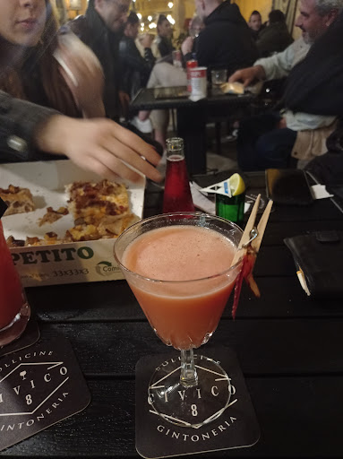 Read moreIo frequento molto spesso il civico 8, consiglio di andarci, personale molto gentile, cocktail buonissimi e bellissima atmosfera, però vorrei lamentarmi di una cosa che mi e successa domenica, io prendo sempre il capiroska alla fragola senza lime non solo al civico 8, ma anche in altri bar, ho ordinato e come sempre andava tutto bene poi e arrivato il conto e tutte le bevande hai miei amici tranne il mio, e il cameriere mi dice che il barman non poteva farmi il capiroska senza lime perche era come fare la pasta senza il sale e quindi non me lo poteva fare, e mi ha detto di ordinare qualcos'altro dal menu, ho letto il menù e non mi piaceva nulla quindi ho chiesto al cameriere di farmi fare dal barman un cocktail qualsiasi alla fragola ovviamente senza lime, e stato molto gentile il cameriere e ha rimediato subito portandomi un cocktail buonismo, pero dopo questo inconveniente non prenderò mai piu un cocktail, solo shot e...