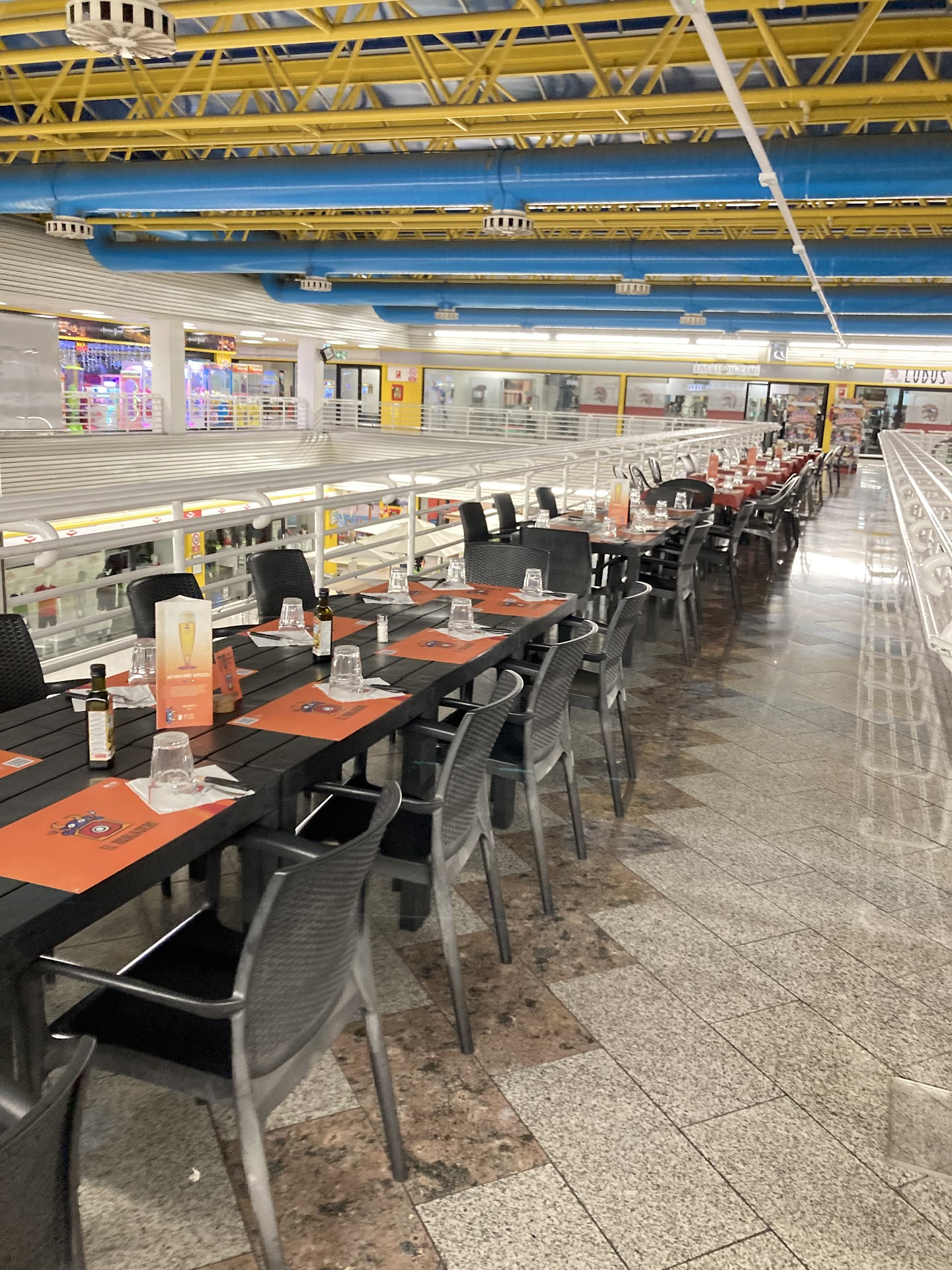 Sono andata svariate volte, e mi sono sempre trovata bene fino a ieri, 22/01/2022. Tavolo prenotato alle 20:30 fronte area bimbi, perché si sa chi ha figli ricerca dei ristoranti che ti diano l’opportunità di mangiare in tranquillità, nemmeno seduti la signorina dell’area bimbi ci comunica che l’accesso è di 3€ a bambino, con obbligo di mascherina dai 6 anni in su………… 3€ per l’accesso all’area bimbi più 1€ di coperto siamo già a 4€ regalati x 2 perché ho due figli, perché dico regalati ? non fanno nemmeno educazione fisica a scuola con la mascherina perchè è da matti fargli inalare la proprio anidride carbonica in movimento e me li obblighi tu in un momento di svago,ma fai prima a chiuderla l’area bimbi!