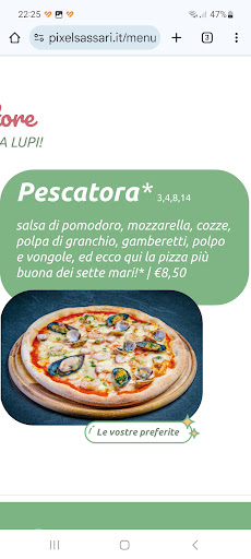 Read moreLa pizza con la pasta e gli ingredienti più buoni della città. Mai un errore nella consegna, mai in ritardo sull’orario stabilito sull’ ordinazione telefonica. Pagamento POS a casa. Proprietario e personale professionalissimi e simpatici. La miglior pizzeria d’apporto di Sassari. Provare per credere. Straconsigliatissima. Oserei obbligare tutti ad assaggiare le...