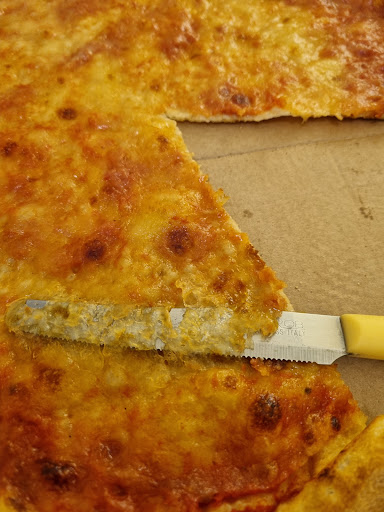 Do una stella perché meno di uno non mi fa dare. Secondo me con la foto capite da soli senza la necessità di molte parole. Ma siccome è veramente triste ricevere a casa una pizza in queste condizioni ve la descrivo: La pizza bianca è più rossa di questa margherita, pomodoro inesistente, mozzarella inesistente (lo strato di quella che chiamano mozzarella è quello che vedete in foto sul coltello), tutto secco, che se mangiassi un mazzetto di fieno sarebbe meno secco, pasta......ma perché c'era? Veramente ragazzi dai è questa la vostra margherita? Risparmiare si, ma questo è proprio ridicolo!! Un pò di...