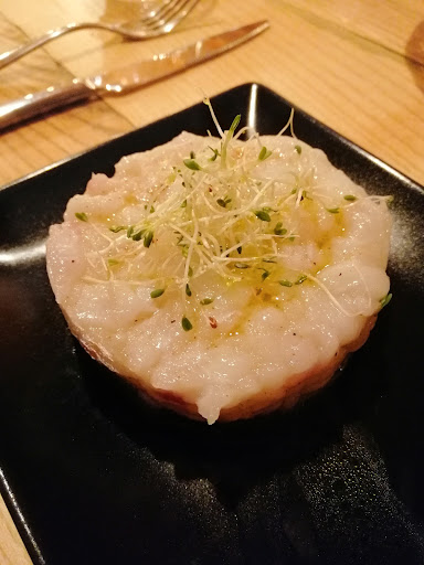 Dopo un ottimo antipasto a base di una delicata tartare di ricciola servita con i condimenti a parte (ottimo modo per permettere al cliente di fare le aggiunte desiderate), opto per una pasta senza glutine con pesto, pomodorini e pesce spada che rappresenta l'unico piccolo neo della serata: buonissima ma, dal mio punto di vista, eccessivamente salata!
