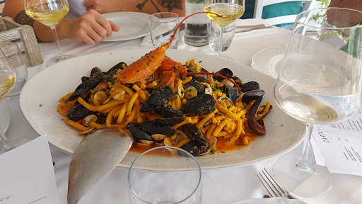 Il cibo… Cosa c’è da dire, forse da recensire per primo…ma mi piaceva molto la location 😅sopra la diga/lago in un terrazzo naturale di un piccolo “monticello”. CIBO OTTIMO! Abbiamo mangiato PASSATELLI allo scoglio davvero BUONISSIMI, come secondo un buon fritto misto veramente BEN FATTO ! Non c’è davvero nulla da dire… Le porzioni più che abbondanti (eravamo 4 persone e abbiamo deciso di fare 4 primi e 2 secondi, direi che è stato più che sufficiente). Ovviamente il tutto diluito com del buon vino (passerina marchigiana) poco perché poi la strada ci aspettava... Per finire un buonissimo dolce (invogliati dalle mille portare una più bella e buona del altra..) E caffè ! Prezzo veramente ottimo 28,50 a testa…arrotondato a 28. Super gentili e bravi. 👏