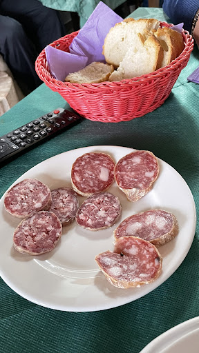 Read moreLeggendo le varie recensioni mi chiedo se sono stata a mangiare in un altro posto!! Locale ai limiti dell'assurdo. Cena con amici. Ordiniamo, specificando di portare prima gli antipasti e le verdure e poi i primi e i secondi. Arriva un pezzo dell'antipasto composto da salame e prosciutto, crescia (chiediamo se ci sono uova nell'impasto.. una cameriera dice sì e un altro no.. ancora lo dobbiamo scoprire!!), rucola e melone. Poi arriva un secondo e un contorno (boh) subito dopo il resto dell'antipasto. Degli altri contorni non si vede traccia... fino a fine pasto.. Arrivano i primi. Erano stati chiesti due primi, uno dei due semplici spaghetti al pomodoro, prima ci dicono che non ci sono spaghetti, ok, arrivano boccolotti al ragù (ma chi li ha chiesti?), Dopo il nostro disappunto alla cameriera, arriva uno dei titolari.. richiediamo un primo semplicemente al pomodoro, dopo una marea di tempo il nostro amico riesce a mangiare il suo piatto di spaghetti al pomodoro (Adesso ci sono gli spaghetti??!! Boh) Ah... Chiesto una ciotola x fare bere il cane quattro volte, dopo due ore abbiamo preso un nostro bicchiere e ha bevuto lì. Disorganizzazione ai massimi livelli, il cibo sarà pure genuino ma niente di eccelso, qualsiasi cosa mangi il conto te lo fa l'oste così approssimativamente leggendo la comanda, tutta sta cortesia io personalmente non l'ho vista, hanno sbagliato diverse volte e neppure un minimo di scuse.. anzi scocciati pure, come a dire che non eravamo stati chiari noi.. ho girato tantissimi ristoranti e non ci siamo proprio! Soprattutto in un luogo sperduto nel nulla e dove la cordialità deve essere al primo posto. Mi spiace.. da riguardare il tutto.. e le potenzialità...