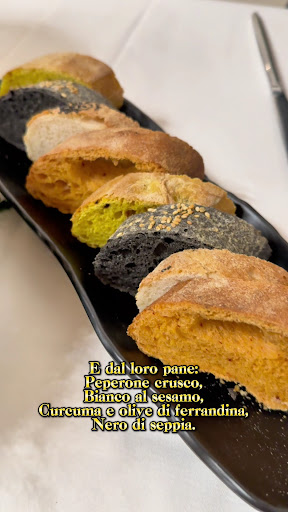 E dal loro pane: Peperone crusco, Bianco al sesamo, Curcuma e olive di ferrandina, Nero di seppia.