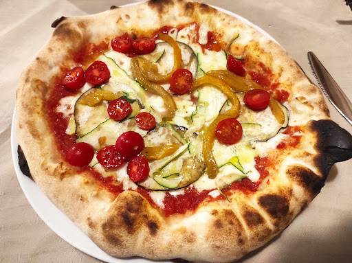 What a place this is-great Pizza's straight from the oven but a nice choice of Piemontese specialties. My wif had the stuffed Ravioli and I had the grilled Tom-cheese with mountain Speck. After I had the Tagliata and it was the best I ever had(and I had many); What made it so special - it was served on a hot cast-iron sizzler keeping the meet at the right temperature and making the Parmeggiano chees melt-lovely. My wife had the steak with 3pepper sauce which was also great of taste ; flushed it with a red housewine and left with a 92€ bill a smile and full tummy. Reservation is reommended as the place is packed (and that makes it a noisy cellar). Very professional staff and excellent service - we...
