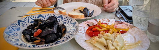 CIBO 3/5: I piatti sono buoni ma fin troppo semplici (carne col sugo e il pollo con le patate te le fanno anche a mensa). Il menù manca di fantasia e a noi è capitato che mancasse anche qualche ingrediente (polpo). Il vero appunto è il seguente: una pepata di cozze non può mai essere servita con un crostino fritto zeppo di olio di frittura! Errore madornale, a mio avviso, perché come ho detto, per il resto il cibo è anche buono.