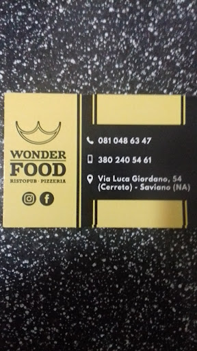"WonderFood"....locale grazioso e curato nei particolari, piacevole accoglienza.. Accomodata al tavolo c'è stato un intercorrere di sapori classici,tradizionali,ricercati....Dagli antipasti (da assaggiare!!!!) alla pizza (soffice, digeribilissima,con connubi di sapori molto interessanti).La carne (di qualità). ll pesce (fresco ed esaltato nella sua semplicità), un primo eccezionale (calamarata ai frutti di mare) tutto accompagnato da un ottimo vino rosso consigliato egregiamente da chi ci ha servito.... un'altra "chicca"!?....il dolce, delicato tiramisù......un viaggio attraverso occhi, olfatto, gusto.. un viaggio che consiglio di intraprendere a tutti quelli che vivono il cibo,anche come "piacere"..... Grazie...