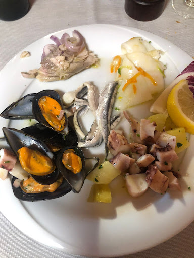 Read moreIl locale si trova alla periferia di Savona, vicino al molo di attracco delle navi di Costa Crociere. Locale storico, non facile trovare parcheggio. Abbiamo preso degli antipasti (cocktail di gamberi e polpo alla ligure}, a seguire un fritto del golfo, a dire poco ricchissimo sia per numero di pesci diversi presenti (merluzzetti, calamari, gamberi, strisce, trigliette, ecc.} sia per l'abbondanza (le due porzioni prese sarebbero bastate per 4 5 commensali). Peccato per il locale, eravamo in una sala piccola con il soffitto basso e, dato che non si riusciva neanche a parlare ci siamo dovuti fare cambiare il tavolo, per il servizio al tavolo quantomeno non professionale, e per i figli dei proprietari che erano impegnati a correre tra i tavoli ed a giocare con un cliente, alla fine siamo usciti senza prendere il caffè. - Restaurant is located on the outskirts of Savona, near the pier of moorings of Costa Crociere ships. Historic place, not easy to find parking. We took appetizers (shrimp cocktails and octopus salade with tomatoes, olives and zucchini), followed by a great fried very rich for the the number of different fishs present (codfish, squids, shrimps, trillets, etc.) and for the quantity (our two portions would be enough for 4 5 people). It was a shame for the room, we were in a small one with a low ceiling and, since we could not even talk, we had to change the table, for service at table at least non-professional, and for the children of the owners who running between the tables and playing with a client, we finally got out without...
