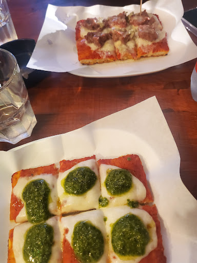 Amazing pizza by the slice. Large variety of toppings to choose from. A small place with a very casual atmosphere. The pizza is different from anywhere else in the way they prepare the pasta for the crust. Light and fluffy squares of pizza made to order. Other items on the menu but for the many years o have been going I have only had the pizza. Never disappointed great place for a quick bite. A bit on the expensive side but fantastic just the same. Check for opening times, no reservations needed. Not good for...