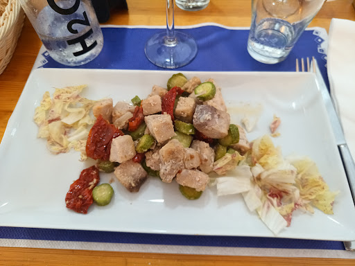 We had a late lunch yesterday in this very clean and simple restaurant. We ordered two different kinds of pasta in a sea food sauce with shrimps and squids. It was very fresh food, yummy and delicious ! The waitress was very kind and professional. Later on we had to come back because I could not find my parking paper and thought maybe I had lost it there. And she searched with me in all the leftover and papers in the most amicable manner. As it happened I had lost it on the floor of the gelateria not far from there and found it to the eyes wide opened surprise of the owner. Anyway, the people of this restaurant were very cool and super nice ! I wish to come back to enjoy again the pasta I had. Our big Grazie ed Arrivederci...