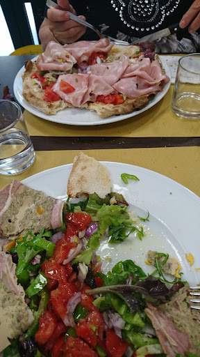 Arrivées à savones à 12h nous cherchons un restaurant, attirées par les bonnes notes et les belles images nous voici au pino Banana, petite épicerie, bar, restaurant, des produits locaux me semble il, je me laisse conseiller un produit typique de Savonnes par le cuisinier avec qui nous pouvons approximativement communiquer en français ^^ maman se laisse tenter par la focacce, ce premier repas de vacances nous enchante =) ma mère aime particulièrement leur pain xD moi je ne savais pas que j'avais envie d'une salade mais finalement c'est bon, c'est Frais, nous sommes bien accueillies. Bref vous pouvez y aller en toute confiance. Et niveau prix on en était à 30 euros pour 2 avec 2 plats et un dessert pour deux ( pure gourmandise...