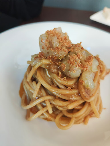 Read morePiacevole novità nel panorama gastronomico savonese. Lo chef Mirko Lacota allievo del maestro Ricchebuono (rist.Vescovado di Noli), con l'ausilio di sua moglie Alina in sala che, oltre ad assistere i clienti con premura e professionalità, è anche una sommelier preparata, hanno allestito questo grazioso ristorante tra le mura del restaurato ex ospedale S.Paolo, in stile minimalista ma allo stesso tempo "caldo" (anche se ogni volta che la porta di accesso si apre, una corrente di aria fredda invade la sala). Menù con non tanta scelta ma con piatti tutti molto interessanti che denotano creatività e ricerca. Oltre alla carta, abbiamo trovato molto interessante la proposta del mini menù degustazione proposto per il pranzo (anche sabato e domenica!) a €30 comprensivo di un antipasto, un primo e un calice di vino. La cosa che ci è piaciuta è che i piatti del menù degustazione possono essere scelti tra tutti quelli presenti nel menù senza limitazioni! Cestino del pane degno di nota in quanto sia il pane che la focaccia sono fatti in casa, acqua microfiltrata, anche il vino proposto col calice è di pregio. Altra piacevole sorpresa è stata la doppia amuse-bouche offerta dallo chef: una spuma di cavolfiore con perle di ponzu e un raviolo fritto ripieno di pomodoro e acciughe; entrambi deliziosi. Come antipasto io ho scelto rossetti e carciofi mentre mia moglie un trancio di ricciola scottato con maionese di acciughe peperone crusco e cavolfiore. Come primi: spaghetti pomodoro gambero crudo su crema di carote per mia moglie e per me un risotto alle erbette con nduja e seppie; materie prime eccellenti e abbinamenti azzeccatissimi. Che dire... come prima esperienza siamo rimasti entusiasti: lo consigliamo a tutti coloro che vogliono evadere dal solito "piattume" delle proposte gastronomiche liguri fatte solo di spaghetti allo scoglio e fritto di totani! I nostri amici a quattro zampe sono ben accetti. Pur trattandosi di cucina ricercata le porzioni non sono troppo "minimaliste" quindi si esce comunque sazi! Torneremo...