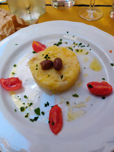 Passando mi sono imbattuta in questo locale, attirata dalla pubblicità che indicava “sabato e domenica a pranzo, antipasto + primo + secondo + dolce + caffè + acqua 1/2 + coperto € 20”, mi fermo a chiedere informazioni al menu e il tizio mi dice che non c’è posto senza aver prenotato. Mentre sto andando via, chiamo il locale e prenoto, dopo 10 minuti mi son ripresentata dal tizio che sorpreso mi ha dovuta far sedere. Prendendo 2 bottiglie di acqua da 1 litro in più, me le ha fatte pagare € 5 a bottiglia, come dettagliato nello scontrino, specificando che non ci è stato mai servito il menù con i prezzi segnalati prima di ordinare, quindi mai avremmo pensato che l’acqua l’avremmo pagata come in un ristorante stellato, anche perché in uno stellato servizio, gentilezza ed educazione trasudano anche dai muri, qui penso che il personale non li abbia mai conosciuti. L’antipasto era un entree di benvenuto, mi guarderei bene dal chiamarlo antipasto, tra l’altro preparato da diverse ore perché le olive erano andate. Tutto sommato il primo, il secondo ed il caffè erano buoni e ben pagati 20€. Qualche consiglio: sarebbe meglio pubblicizzarsi solo con le portate principali + caffè a 20€; offrire l’entree al cliente che si sente più coccolato; eliminare quei dolci da supermercato dalle proposte offerte; far pagare adeguatamente le bevande ed evitare di servirle sbattendole sui tavoli; cambiare le posate ogni tanto; accettare i clienti con gentilezza, cortesia ed un bel sorriso, senza pantomime per farli andar via, come ha fatto il tizio all’inizio. Non tutti possono aver a che fare con il pubblico e le attività che lavorano così dovrebbero chiudere, se non sapete aver a che fare con i clienti o non saper vendere un prodotto, purtroppo non andrete molto lontano. Inoltre, il dehor...