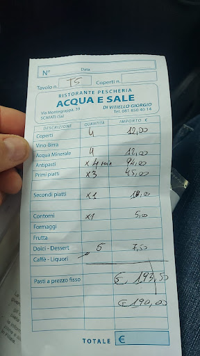 I been wanting to come here for about 3 years and finally I decided to go for dinner 2-3 weeks ago I came on a Saturday and I was surprised that it was closed but other night I went and it was good 2 nd plate was a yellow tail fish that I ate but it was a little too fishy tasting for me I had the pasta with clams and muscles it was excellent. The waiter was very friendly. He spoke English. The atmosphere was good. I came a little early maybe 8:30 PM I have the tiramisu for dessert and a glass of wine white with my dinner which was perfect. It’s a core. Here is very nice. It gives you the feeling of the beach Water and Salt the name of the restaurant.. Perfect name mostly seafood here. They have outdoor seating, but it was too hot to sit outside. I sat inside In the air condition. I will come back here again. It was a little expensive, but you pay for what you get . I recommend...