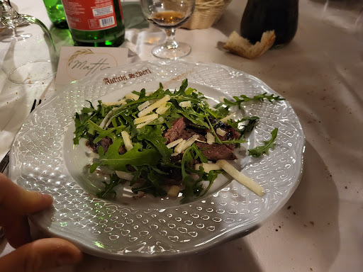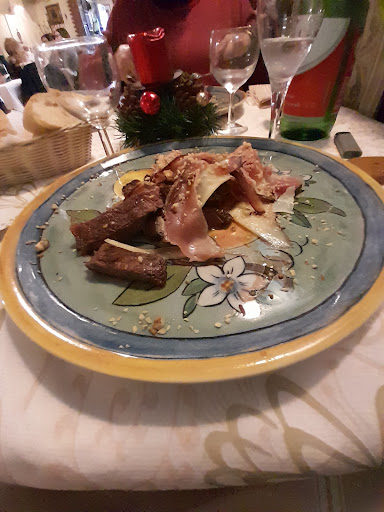 CIBO Per quanto riguarda il cibo grossomodo si è mangiato bene. Siamo partiti da un antipasto di mozzarella di bufala DOP e prosciutto crudo accompagnati da bruschette con crema di parmigiano e granella di noci per finire poi con zucchine alla scapece, nel complesso tutto molto buono. Primo piatto, bauletto con stracotto al barolo pomodorini e burrata, allora, questo piatto mi ha colpito molto in quanto le dimensioni non sono eccessive, ma vi posso assicurare che riempie, sarà il ripieno o la burrata ma il piatto mi ha soddisfatto, per quanto riguarda la burrata però devo dire che è buona si, ma non è la migliore che abbia assaggiato. Secondo piatto, tagliata di carne alla brace con rucola e scaglie di grana, questo piatto invece personalmente non mi ha soddisfatto più di tanto sia per la cottura della carne (attenzione, che avrei potuto tranquillanente io chiedere di farmi fare più al sangue), sia per la carne stessa in quanto era un po' troppo "fine/sottile", se dovessi ritornare la riordinerei? Probabilmente no. (la carne era buona, solo personalmente preferisco altri tagli). Il tutto era accompagnato da patate al forno con carote e cipolle, purtroppo ho dimenticato di fare la foto al piatto, però erano molto buone.