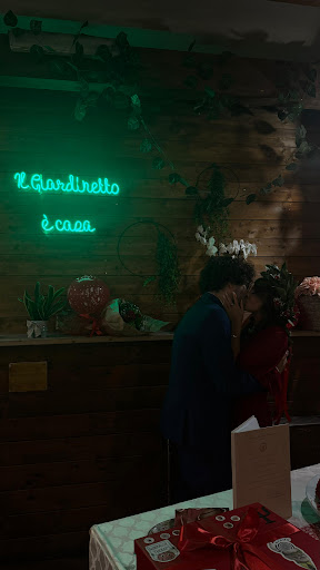 Un locale molto gradevole. Adatto ai bambini, con un ampio spazio all'aperto e una grande stanza con giostrine anche al chiuso facilmente controllabile anche dai tavoli. La sala interna è dotata di ampi finestroni che d'estate, alzati i tendoni, diventa praticamente aperta, cosa che, in tempi di pandemia, è un valore aggiunto. I tavoli all'aperto organizzati d'estate sotto una copertura leggera e con luci soffuse creano un ambiente suggestivo. Molto comodo il parcheggio. I proprietari e il personale sono sempre professionali e cortesissimi. Quando siamo rimasti isolati in casa per il contagio, pur non facendo servizio a domicilio, si sono presi la briga di portarci fino a casa (non proprio vicinissimo) la pizza senza glutine che di solito prendiamo ogni settimana per mio figlio. Le pizze senza glutine sono in assoluto le migliori della zona. Buone e abbondanti, disponibili in tutti gli stessi gusti di quelle con il glutine. In generale, non solo le pizze e i saltimbocca, ma tutte le portate del ristorante sono disponibili anche nella versione senza glutine, cosicché è davvero un sollievo per una famiglia con un bambino intollerante al glutine avere nei pressi un locale come il "Giardinetto"...ci ha reso la vita più facile sapere di poter contare anche all'ultimo momento, ad esempio in caso di festicciole improvvise, sull'asporto di pizze o piccola frittura piuttosto che di tranci di torta senza glutine. Per non parlare della possibilità di avere un locale di riferimento per poter festeggiare qualche ricorrenza in famiglia con la tranquillità di un personale sempre molto attento ad evitare possibili inconvenienti con contaminazioni con il glutine. Tra l'altro si tratta di un locale segnalato dall'AIC, anche perché ha un forno per le pizze e un'area di cucina separati per le preparazioni senza glutine. Per noi conta moltissimo questo aspetto, ma non di meno apprezziamo molto, in generale, anche le loro pizza e cucina...
