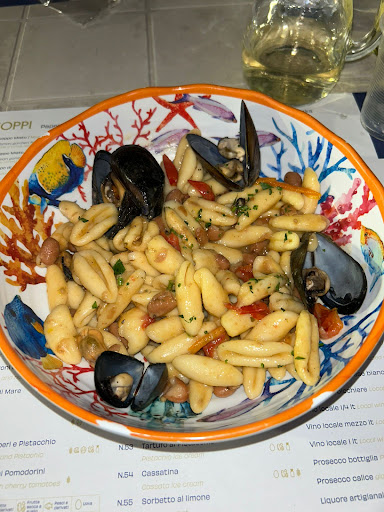 Read moreBellissima esperienza un po' all'americana nel senso è all'interno di un parco giochi ma con tatti posti dove mangiare e siamo andati da FRESCO DI MARE. Ci sono tavoli all'aperto e l'idea e a dir poco geniale !! Prendi il tavolo scegli cosa mangiare ti metti in fila e paghi e dopo i camerieri ti portano tutto al tavolo. Abbiamo preso patatine fritte, un cuppo misto e uno gamberi e calamari... Patatine buone buone i cuoppi erano caldi e soprattutto buoni. Frittura leggera e gamberi di quelli buoni dove devi lavorare per levare il carapace (simtomo che il prodotto è abbastanza fresco). Poi come primi uno spaghetto con le vongole (le vongole buonissime e forse il piatto un po' troppo sapido ma non troppo da renderlo immangiabile) gnocchetti Faggioli e cozze (spettacolari) e fusilli con frutti di mare. Poi una bella impepata di cozze non troppo pepata (avrei gradito dei crostini che ci stavano alla grande invece che solo cozze che comunque erano per 2 persone tranquillamente come wuantita). Il polpo con le patate una MERAVIGLIA 😍😍😍 da 10 e lode ( poche volte ho mangiato un polpo così e delle patate condite in modo perfetto) il tutto con 1/4 di vino bianco e 2 acque naturali . Ripeto esperienza che se posso ripeterò. Non è un ristorante ma sinceramente la qualità e quantità e la novità dell'idea lo rendono unico. Bravi bravi bravi e un saluto a ROBERTO sempre attento e che guida la brigata in modo eccellente. Consiglio di andare almeno entro le 20:00 dopo inizia lunga fila.e si può anche aspettare...