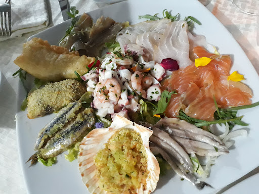 Read moreSiamo della zona ma lo abbiamo appena scoperto. Siamo stati ieri sera. Ristorante dalla qualità di pesce veramente ottima, piatti squisiti. Onestamente ci è parso molto sottovalutato in termini di quantità di clienti. Noi lo consigliamo fortemente. L'antipasto di pesce crudo era freschissimo, aveva degli abbinamenti leggermente studiati e molto ben riusciti, lo abbiamo finito in un istante pur avendo mangiato prima la pasta. I ravioli buonissimi e molto buona anche la calamarata con pesce fresco. Forse da migliorare solo le linguine all'astisce. Non abbiamo mai usufruito del lido ma si vedeva nonostante fosse notte che è veramente molto ordinato e pulito. Non mancano i giochi per bimbi ed altri servizi ma nonostante questo è tutto sistemato a tal punto da renderlo abbastanza elegante anche come ristorante. Atmosfera serale molto romantica. Torneremo sicuramente. Straconsigliato il loro dolce semifreddo fichi noci e cioccolato...