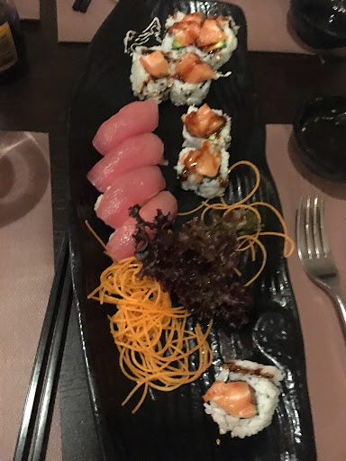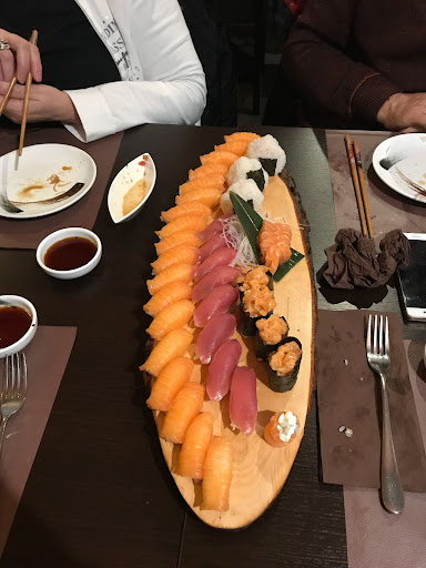 Il sushi è buono, ma non consiglio i nigiri, gli conodiscono troppo invece di mettere semplicemente la fetta di pesce sopra (forse per insaporirli?) Rovinandone completamente il sapore, ad esempio il nigiri al salmone aveva la scorza di limone sopra e sapeva esclusivamente di limone. Il resto del sushi era buono, l'unica cosa alcuni sushi che abbiamo ordinato con il riso venere avevano il riso cotto poco ed erano quindi duri da masticare.