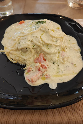 Read moreNice little restaurant in the old town. We dropped by on a Sunday evening in June and got a table outside without a reservation. We had bruschetta and caprese from the regular menu and spaghetti with zucchini cream and veal goulash from the day's menu. Everything was served within a short amount of time and tasted excellent, as well as the pecorino white wine we chose. The waitresses were quick and very friendly and spoke English quite well. Last but not least, the trattoria is by no...