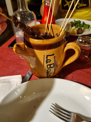 Preso paccheri allo zafferano, bruschette e arrosticini che erano davvero eccellenti. Preso insalata verde mista; per 4 euro mi aspettavo una INSALATA-VERDE-MISTA invece era 1 foglia verde mista di sè stessa senza nient'altro che la rendesse "mista" invece di "unica". 4 euro di tristezza. Nemmeno lo scomodo di condirmela sta foglia di insalata spezzettata in 1 piattino del caffè. Prendete le patate che conviene.