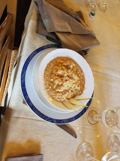 Fattoria molto bella, riadattata a sala ricevimenti/ristorante elegante. Purtroppo essendo in un antico casale, non è comoda: scale strette, niente ascensore e noi che eravamo là per un battesimo abbiamo dovuto portare a mano il carrozzino della bimba al primo piano dove si mangia (e c'erano altri 3 bimbi nel gruppo). La cucina toscana è essenzialmente di carne, per questo non abbiamo toccato gli antipasti (solo delle bruschettine con il pomodoro, che fungevano da accompagnamento ai fegatini ed il lardo). Di primo abbiamo preso un risotto pere è pecorino e, sebbene da principio abbia apprezzato l'abbondanta del piatto, ne avro' mangiato circa un terzo. Ok, la Toscana non è terra di risotti, ma pure in Puglia sanno che il risotto non si fa col parboiled, ed inoltre i sapori non erano amalgamati: era un riso bollito mischiato con fonduta di formaggio e pera spezzettata a crudo, veramente scarso come sapore. I tortelli di patate con funghi erano un po' scialbi di sapore e 'impegnativi' da mangiare. Di secondo abbiamo preso dei porcini arrosto, e, sebbene la qualità del fungo fosse molto buona, la preparazione era troppo umida e le spore avevano una consistenza viscida, io le cappelle non sono riuscita a mangiarle. Ottimi i piatti di contorni (fiori di zucca fritti e patate arrosto). I piatti di carne in generale erano mediamente buoni (ho chiesto agli altri commensali). Personale gentilissimo, parcheggio stretto non adeguato al numero di coperti...