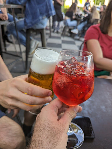 Essendo clienti occasionali, poichè di passaggio per la via degli dei, si sono permessi, di farci un prelievo bancomat diverso da quanto richiesto a voce. La cameriera ha avuto un atteggiamento poco trasparente e non ha appositamente esposto il prelievo che é avvenuto contactless in sua mano. Per me era anomalo chiedere l'evidenza di quanto fatto perché mi sono fidato del suo comportamento professionale che alla fine si é rivelato disonesto. In fine lo scontrino fiscale non é stato mai consegnato... Faccio fatica a comprendere il senso di un comportamento così deplorevole al giorno d'oggi in cui esistono i feedback comunqie questo la dice lunga sullo stile del locale. Spritz buono, americano ottimo ma poco generoso, posto...
