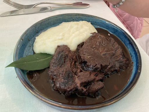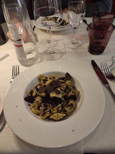 Non è la prima volta che ci mangio e torno solo per il buon ricordo che avevo!! . Peccato anni fa era un buon ristorante! Ora é non è piú al passo con i tempi sia per il menù limitato, ripetitivo e non originale. Il servizio è accettabile. Ma non sono accettabili molti altri aspetti : ad esempio NON si deve usare la panna come aggregante per alcuni primi piatti (compresi quelli con tartufo. La scelta dei contorni é dichiarata "di stagione" ma in realtà non c'è nulla di fresco e vario (in estate!). La cosa più orrenda é stata la "bistecca": un bastone di osso con un po' di carne e grasso attaccati; il sapore era disgustoso, carne impresentabile e disgustosa rimasta sicuramente in frigo per troppo tempo. Questo giudizio é stato condiviso da altri commensali.. (ita est!) Certo non mi piace fare una recensione negativa ma é un invito ai proprietari per una serena e proficua riflessione. Per ora naturalmente non tornerò più qui.. Riflettete...
