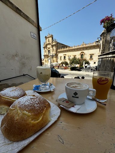 Do 2 stelle per la qualità del prodotto (granita e brioche morbidissima) e per la cornice urbanistica in cui si trova immerso questo caffè, sua fortuna… Ma non è possibile davvero che in piena stagione estiva, a metà mattinata, abbiano da servire solo 3 gusti (2 e mezzo, per la precisione) di granita (pistacchio, limone e mandorla da smezzare con altro perché troppo poca). E dire che la granita sarebbe il loro prodotto di punta, l’ho sempre mangiata e mi ha sempre deliziato! (Specialmente quella al caffè). Mi dispiace notare questa trascuratezza (anche nel servizio) che, devo ammettere, avvolge Scicli in generale…come si dice: “avere il pane e non...