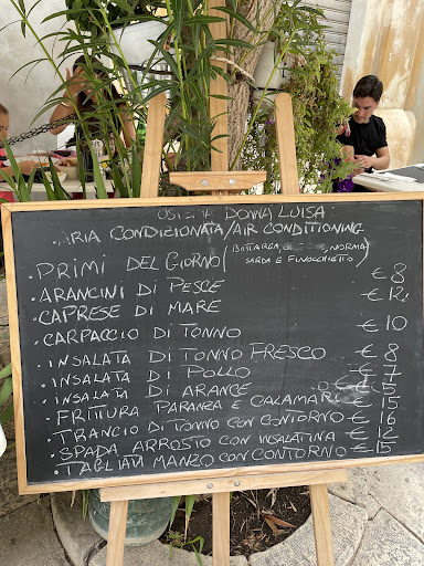 Read moreFirst of all you have to visit Scicli in Sicily. The town is wonderful with amazing views and the coolest streets for shopping and dining. We came upon Donna Luisa's Osteria owned and operated by Donna Luisa and her son (figlio). We had a salume and formaggio board that was outstanding. At one point Donna Luisa came out, introduced herself and we had a wonderful conversation. She learned we just retired to Sicily from St. Louis, Missouri and together we worked through our basic Italian while she worked through some English. Warm conversation with lots of laughs and making new memories. Try Osteria Donna Luisa. Make sure to eat outside. It's so inviting and great for...