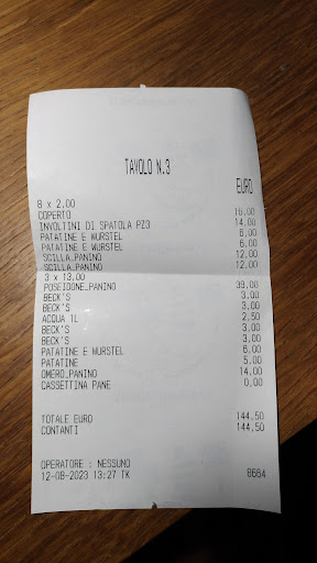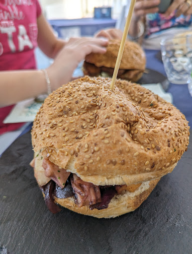Read moreTerrazzo piccolo ma carino con vista bellissima, accoglienza del personale e gentilezza da rivedere, capisco che la clientela non manca ....per non andare al solito civico5 ,oramai altamente inflazionato e con code chilometriche, ci siamo fermati qui....panini poco saporiti ,il classico con il salmoriglio (12euro) sapeva veramente poco di pesce e ancor meno quello allo spada con pomodoro e melanzane arrosto ( insipido) il panino con il polpo e cipolle caramellate bello a vedersi ma le cipolle coprivano totalmente il sapore del polpo peraltro molto morbido, gli involtini di spatola veramente salati e cosparsi di pepe rosa, dopo un involtino mi era già passata la voglia, cmq in 8 (di cui 3 bambini) la spesa è stata di 144 euro e solo dopo arrivato in spiaggia ho notato che invece che pagare 2 piatti di patatine con wurstel me ne hanno fatti...