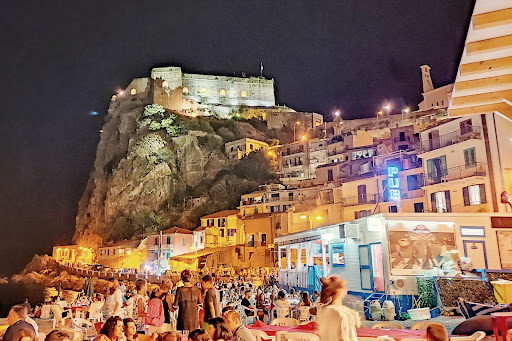 Read moreCoccolati e di casa ancora prima di arrivare. Scelgo questo posto prima di iniziare le vacanze per la posizione lo stile della cucina ed il clima che si respirava dalle recensioni. Chiamo per prenotare ed una dei soci, Santina , mi accoglie per telefono come se ci conoscessimo da anni. Scelgo il secondo turno per poter arrivare e parcheggiare con calma. Ma Scilla in questi giorni è moooolto caotica e rischio di saltare la serata. Chiamo il locale preoccupato di non riuscire a giungere da loro e piovono consigli su dove e come mettere l'auto.... "Puoi prendere le scale, l'ascensore, l'elicottero ma non puoi saltare la cena con noi" Insomma neanche fossero la Protezione Civile sistemo auto e famiglia al tavolo e siamo in spiaggia di fronte al mare con un clima ed un convivio piacevolissimi, musica dal vivo ma non assordante in una cornice paesaggistica incredibile con il castello Ruffo che ci domina dall'alto. Santina ed Ermanno, sembrano cane e gatto ma si adorano, ci trattano quasi come parenti. Il menù, ottimo per essere un pub neanche l'ho voluto "usare". Ho fatto fare a loro ed è stato bellissimo.... e buonissimo. Frittura di pesce, bruschette di polpo con cipolla caramellata e burrata, involtini di pesce spada, parmigiana di mare, vino bianco ghiacciato, birre Artigianali....e perché no, un gelato che sembrava di essere anche a Pizzo Calabro 🙂.... Amariiiiii finali e tante chiacchiere. Poi una bellissima passeggiata a Chianalea, 10 minuti dal pub e, solo all'una di notte di nuovo in auto... l'avevo dimenticata 😂😂 Grazie ragazzi bel locale e gran bel modo di accogliere le persone....