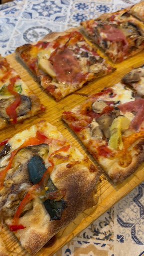 La pizza migliore in un raggio di 60 km!!! lievitazione per oltre 72 ore dice orgogliosa la titolare....e(si sente)👍.Una pizza di alta qualità fatta con lievito madre. Praticamente...un'alveolata unica! Straordinaria. Consiglio di lasciarsi guidare nei gusti dal titolare e di scegliere"il metro". Prima di scrivere questa recensione ho aspettato 3 volte... E siccome al quarto appuntamento nulla è cambiato nella qualità (eravamo in 10 commensali) non potevo non attribuire il max del punteggio...praticamente un 10 e lode....