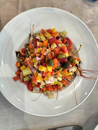 Read more⭐️⭐️⭐️ e mezza. Qualche giorno fa conquistati dalle buone recensioni in rete abbiamo cenato ai Savi. La prima parte della serata si è svolta in una atmosfera tranquilla con una soffusa musica di sottofondo, è stato piacevole fare conversazione al tavolo. Abbiamo iniziato la cena con una entrè della casa, tonno rosso sott’olio preparato dalla casa, abbiamo proseguito con degli antipasti, un tris di tartare (tagliolini di seppia, tonno e dentice) e un piatto con carpaccio di tonno e di branzino). Pesce fresco e di qualità, così come abbiamo trovato un menù bello ricco da cui scegliere. Il secondo scelto, una catalana di crostacei per tutti e due) sinceramente ci ha stupito molto meno, sebbene non sia in discussione la qualità del cibo, me l’aspettavo più gustosa e con un accompagnamento più leggero e fresco. Purtroppo la seconda parte del pasto è stata disturbata dal chiacchiericcio un po’ troppo elevato di alcuni tavoli, persone che sono arrivate più tardi durante la serata ma che hanno interrotto la pace dei clienti già presenti. Avrei sinceramente preferito che a questa compagnia, un po’ troppo chiassosa, fosse stata dedicata una stanza a sè. Alla fine rotta l’atmosfera, abbiamo preferito andarcene piuttosto frettolosamente. Prezzi leggermente elevati per quanto mangiato, servizio cortese ma l’ho percepito un...