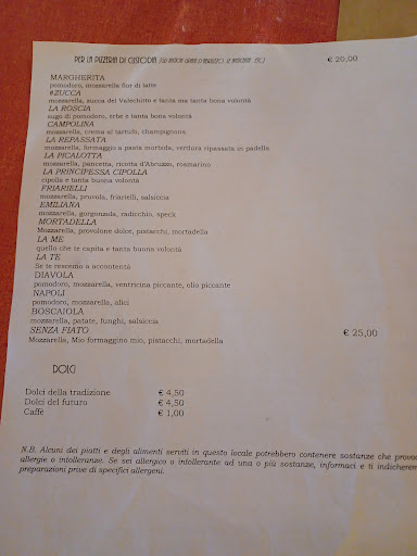 Read moreSono stata in questo locale "singolare" con amici due settimane fa (eravamo in 6). Ne avevamo sentito parlare e così ci siamo decisi a prenotare un tavolo. Fuori non ci sono insegne: l'ingresso ci ha lasciati un po' perplessi e dubbiosi. Il nostro tavolo era sistemato nella zona del giardino. Lo stile è vintage con tavoli e sedie di un tempo, tutti diversi tra loro. Stessa cosa per piatti, bicchieri e posate. Personalmente non è il mio stile, ma ho apprezzato ugualmente la filosofia dei gestori. Il menu proposto si poteva leggere su un foglio A4 che ci è stato consegnato, ma che non è stato facile decifrare. Così abbiamo chiesto spiegazioni e consigli prima di ordinare. Visto che era la prima esperienza lì per tutti, abbiamo chiesto un assaggio della loro cucina e ordinato 2 pale di pizza, con 2 caraffe di birra. La cameriera, gentilissima, ci ha assicurato che avrebbe fatto lei le scelte per noi e servito un po' di antipasti prima della pizza. La salsiccia presente nei 2 piatti di salumi non ha incontrato il nostro gusto, e così è tornata indietro quasi per intero. Dopo un un po' è venuto il cuoco al tavolo e, con veemenza e in maniera alquanto grottesca, ha chiesto il perché non avessimo mangiato la salsiccia, spiegandone le qualità, le modalità di stagionatura e soprattutto ribadendo che a lui piaceva così 😅 e, mentre si allontava, diceva che l'avrebbe tolta dal conto. Noi non abbiamo fatto lamentele, né chiesto che ci venisse effettivamente decurtata dal conto. Semplicemente non ci è piaciuta e non l'abbiamo mangiata (può capitare!🤷). Il cibo è discreto e particolare. Alcune proposte sono introvabili in altri locali e il loro impegno nel fare qualcosa di diverso, genuino e valorizzare pietanze del passato è ammirevole. Cose buone sí, ma nessuna che ci abbia lasciato "estasiati". L'unica cosa che ci ha lasciato a bocca aperta è stato il conto salatissimo!!! Lo scontrino riportava però solo il totale. Non un dettaglio per pietanza portata al tavolo (costo coperto e bevande non è neppure indicato nel foglio del menu). L'unico prezzo certo era quello delle due pale di pizza. Ma per arrivare al totale ce ne voleva!!!! Come abbiano calcolato l'antipasto resta un mistero. Forse un pochino di trasparenza e chiarezza in più non guasterebbe. Quando poi il locale è pieno e non si ha la prontezza per chiedere delle spiegazioni in più, rilasciare un conto dettagliato sarebbe sicuramente l'ideale per evitare equivoci. PS: alla fine, quindi, non abbiamo nemmeno capito se la salsiccia è stata tolta dal conto 🤣 Andateci pure, un'esperienza si può fare ma......
