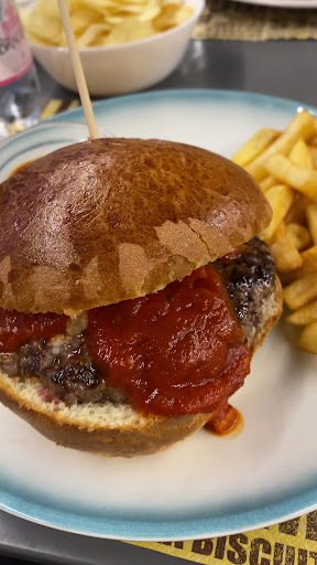Read moreEsperienza da rivedere. Vengo in questo locale assieme a qualche amico per vedere la partita, chiedendo espressamente un tavolo in cui si vedesse la partita, e al telefono mi viene detto di non preoccuparmi che mi verrà assegnato uno dei tavoli migliori. Arrivo sul posto e vengo relegato in un tavolo dietro la cassa da cui il maxi schermo si vedeva a stento causa il continuo via vai di persone alla cassa. Risultato: a fine primo tempo torno a vedere la partita a casa. Per il resto i panini sono buoni un po' meno le stuzzicherie di antipasto (anelli di cipolla, pepite di pollo ecc) che...