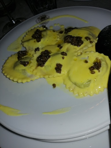 Ravioli spettacolari: un abbinamento veramente azzeccato zafferano e tartufo per la salsa e ricotta e spinaci per il ripieno, consigliatissimi. La carne buona, ma poca. Mi aspettavo porzioni più grandi date le recensioni e i prezzi. Si sono rifatti con i dolci veramente molto buoni. Un antipasto a base di salumi, una bruschetta con tartufo, un primo, due secondi, un contorno e due dolci, con una bottiglia di vino da 15/16 euro e una di acqua. 85 euro, caffè e amaro offerto da loro. Se non fosse stato per la dimenticanza della tagliata, che ho dovuto aspettare e mangiare meno cotta di quello che avevo chiesto (media) e se le porzioni (almeno della carne) fossero state poco più grandi avrei dato 5 stelle. Il cameriere educato e a modo, il locale molto in linea con la zona, pietra e legno che hanno sempre il...