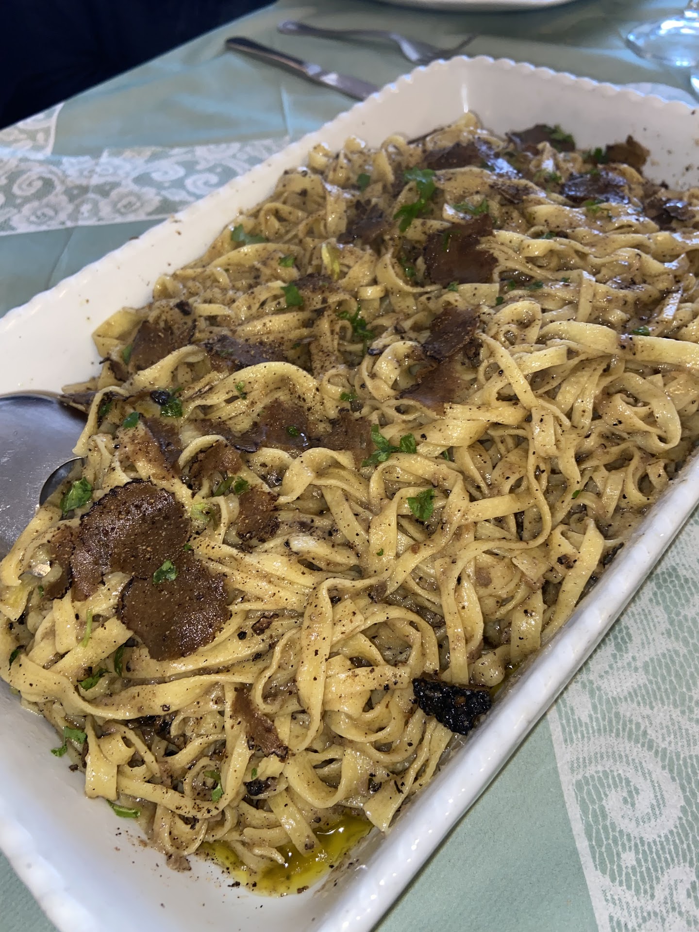 We happened upon this lovely restaurant at lunchtime while strolling around Sellano. What a great find. We had one of the best pasta dishes we’ve ever had in Italy, a delicious homemade pappardelle with fresh porcini mushrooms. It was served family style by the very gracious Marie Rosa, sister to the restaurant owner. After eating we had a very enjoyable conversation with her practicing our limited Italian as she did with her English. We sat on the terrace with a lovely view of the surrounding valley. All in all it was a very pleasant and delicious way to spend a bit of time in beautiful Umbria. Highly recommend coming here for a meal. Easy to get to,...