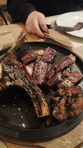 E così, eccoci nuovamente all'Osteria da "i Babbo" dopo la prima soddisfacente 😃 esperienza di alcuni mesi fa. Giunti in loco sulle 20.45 previa prenotazione 📞, siamo stati cordialmente accolti dal responsabile 👨🏻🦱 che subito ci ha fatto scegliere un tavolo di nostro gradimento tra quelli disponibili. Una volta seduti (se non sbaglio sempre allo stesso posto dell'ultima volta, presso la saletta più piccola) abbiamo atteso il nostro commensale 🧔🏻 consultando il listino 📋, benché avessimo le idee già abbastanza chiare su cosa mangiare. In breve i ragazzi dello staff 👩🏻🧑🏻 hanno quindi raccolto la nostra ordinazione relativamente alle bevande (un litro d'acqua 💧 frizzante e una bottiglia di Morellino di Scansano 🍷) e ai primi piatti 🍝 (pici toscani rispettivamente ai gusti cacio/pepe/tartufo, salsiccia/cavolo nero e ragù), lasciando però al titolare 👨🏻🦱 l'onore di mostrarci in anteprima la portata maestra: la fiorentina 🥩. Eccezionale quest'ultima, un taglio da oltre 1,5 kg che abbiamo convivialmente condiviso al pari dei contorni, ovvero i fagioli 🫘 all'uccelletto e i porcini fritti. Tutto veramente superlativo 🔝 per qualità delle materie prime, gusto 😋 e preparazione, ancorché non avessimo alcun dubbio a riguardo. Valido pure l'aspetto coreografico delle portate (vedasi foto 📸 allegate 📎). Gustosissima poi la focaccia 🍞 con l'olio d'oliva 🫒, il cui cestino è stato peraltro rimpinguato a più riprese. Totale del conto di 210 euro 💶, dunque 70 a testa; trattasi, forse, di tariffe medio/alte ma comunque commisurate alla qualità offerta. Come accennato, gentilissimi e cordiali tutti i membri dello staff, dai ragazzi 👩🏻🧑🏻 al titolare 👨🏻🦱, con il quale ci siamo intrattenuti a scambiare quattro chiacchiere al momento di saldare il conto. Argomento di discussione? Inevitabilmente la Fiorentina, stavolta però non quella da mangiare 🥩, bensì la compagine che con "undici atleti e un solo cuor" di Firenze rappresenta "vanto e gloria", come cantava 🎙 qualcuno. A offrirci l'incipit, naturalmente, la bellissima maglia viola 🟣 (risalente ai tempi della gestione Prandelli) incorniciata e appesa al muro. Accogliente l'atmosfera del locale e gradevole l'arredamento improntato ad uno stile sobrio ma al contempo raffinato. Belle le fotografie panoramiche di Firenze e, soprattutto, la grande mannaia 🔪 su tagliere collocata tra le aiuole davanti all'ingresso. Bagni 🚾 puliti e in ordine 🚽🧻🧴. L'area parcheggio 🅿️ presente sul retro è piccola e, difatti, l'abbiamo trovata piena entrambe le volte. Ad ogni modo, I Babbo sempre un punto di riferimento 🔝....